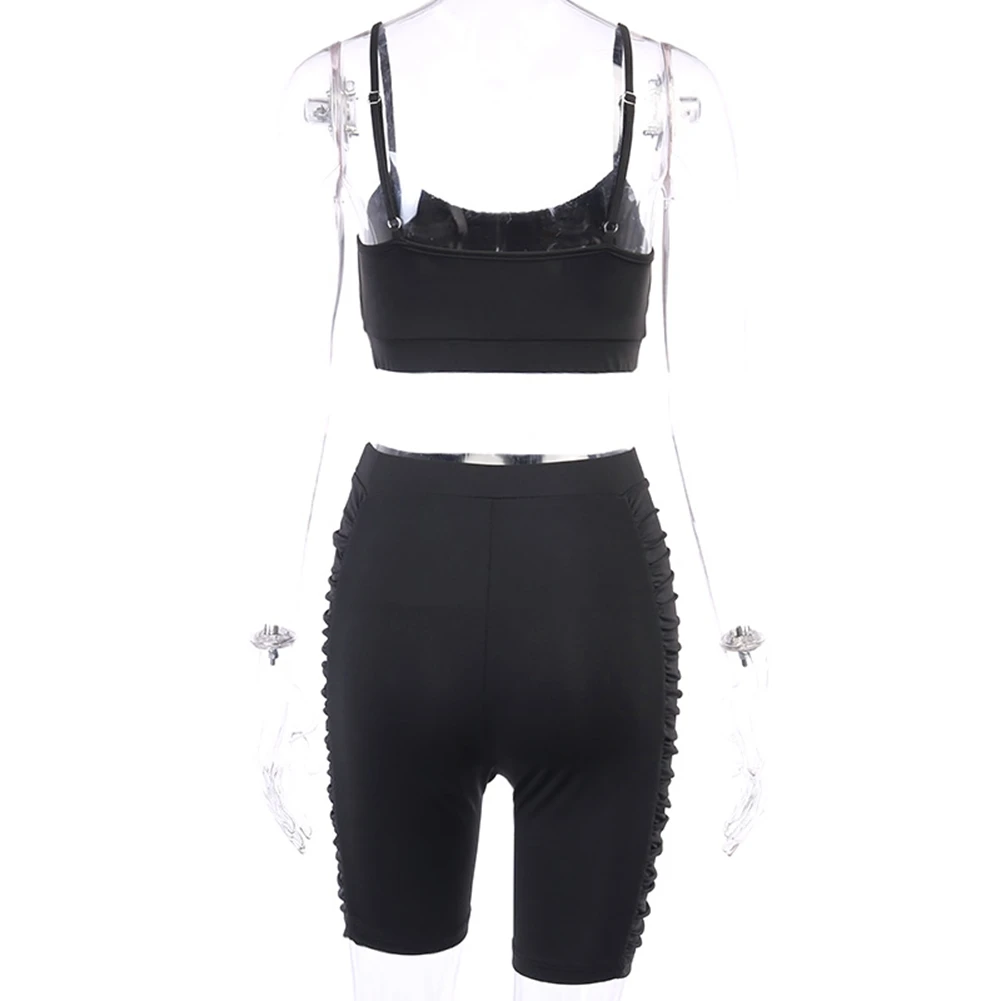 2020 Female Women 2PCS Tracksuit Clothes Set Summer GYM Casual Solid Outfit Top Crop Vest High Waist Shorts Costume Clothing