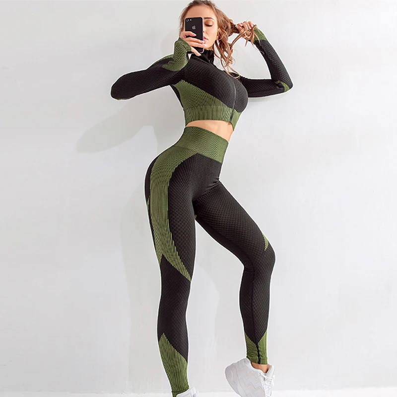 women gym sets 2 piece long sleeve fitness suit sportswear seamless workout gym wear set woman gym clothing for women yoga set